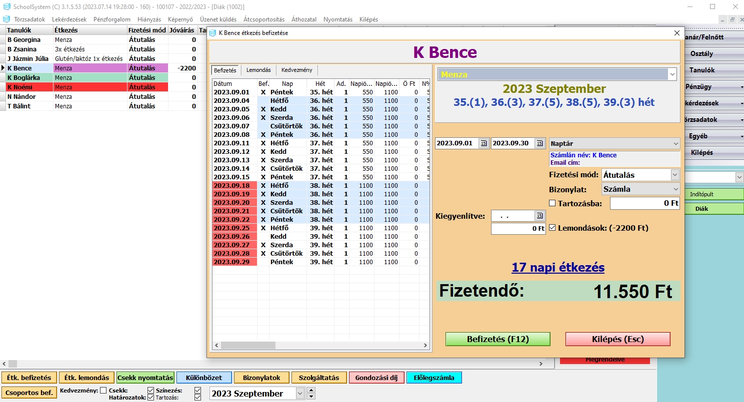 A SchoolSystem 3.0 étkezési szoftver tulajdonságai:
